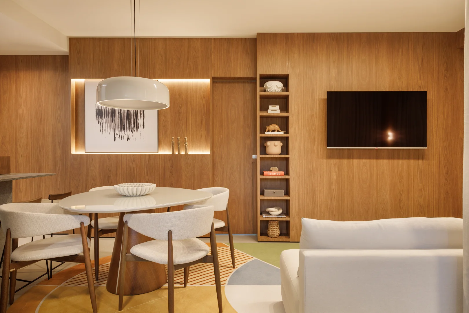O resultado é um apartamento aconchegante e funcional, que alia estética e praticidade em cada detalhe