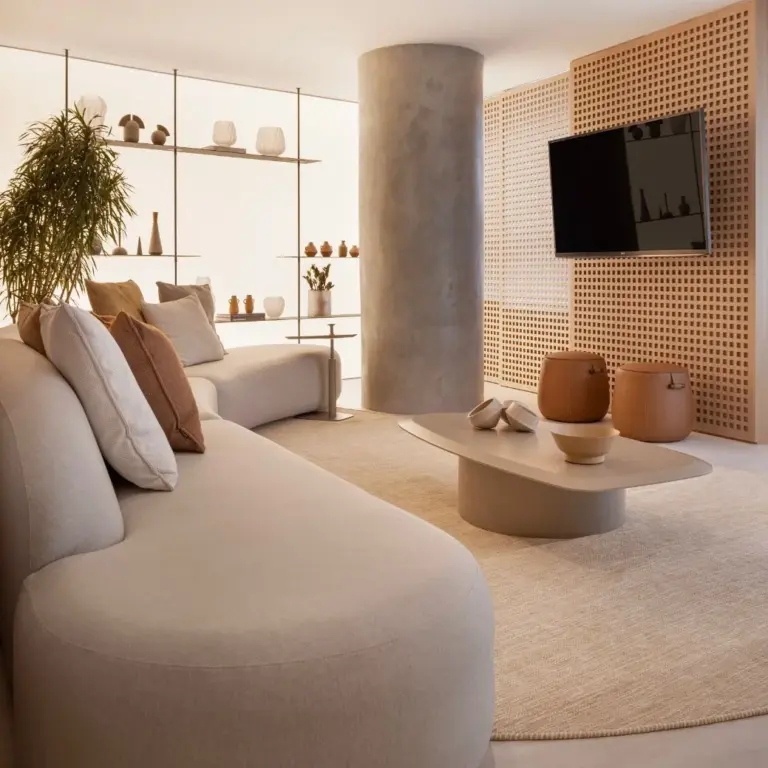 Na área íntima, a composição clean e neutra proporcionam funcionalidade para as três suítes, em especial à suíte do casal.
